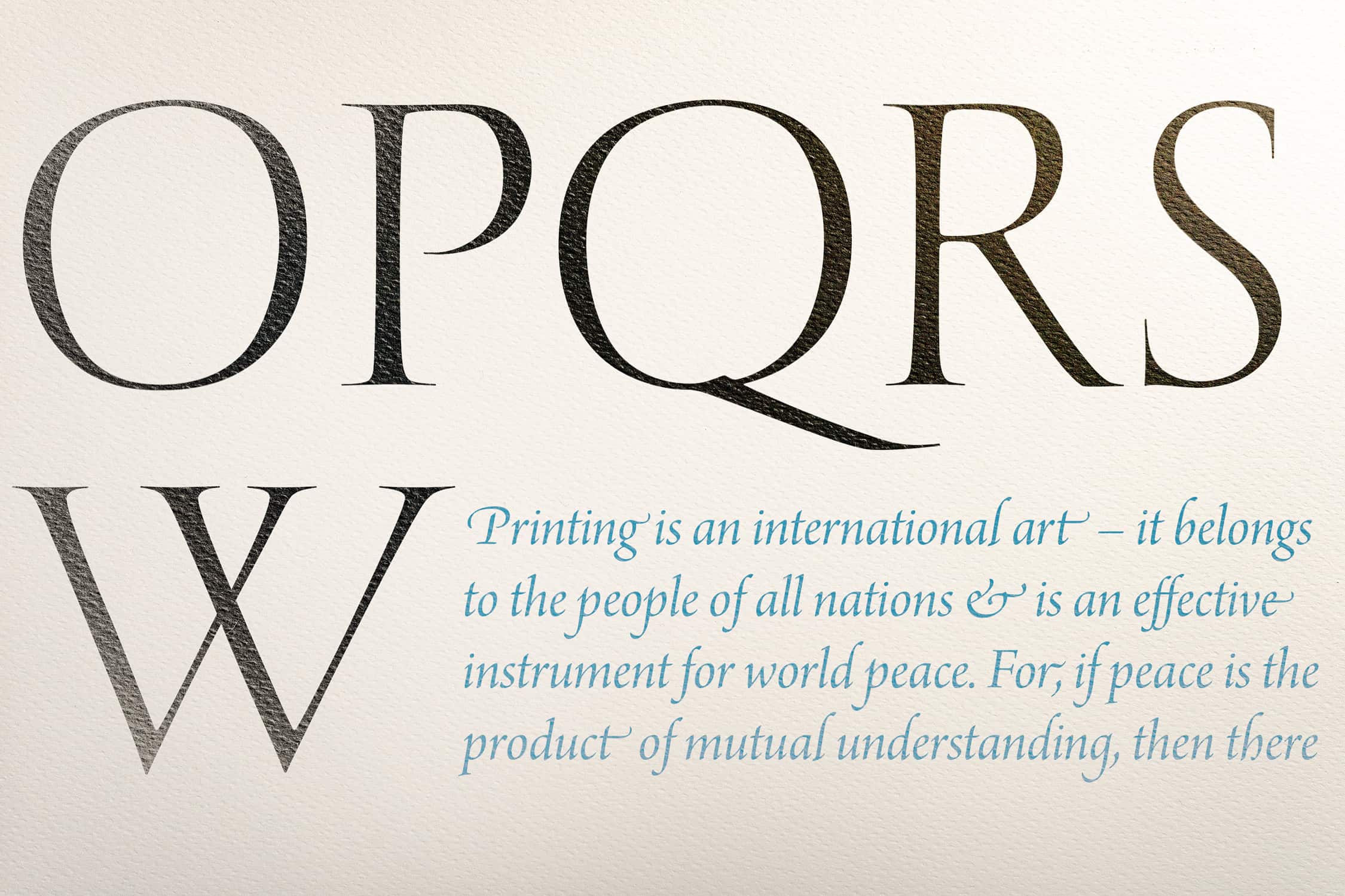 While this font is too fine for letterpress printing, it works great for laser and offset, giving a handlettered look to the paper. Shown here with Arno Pro Italic.